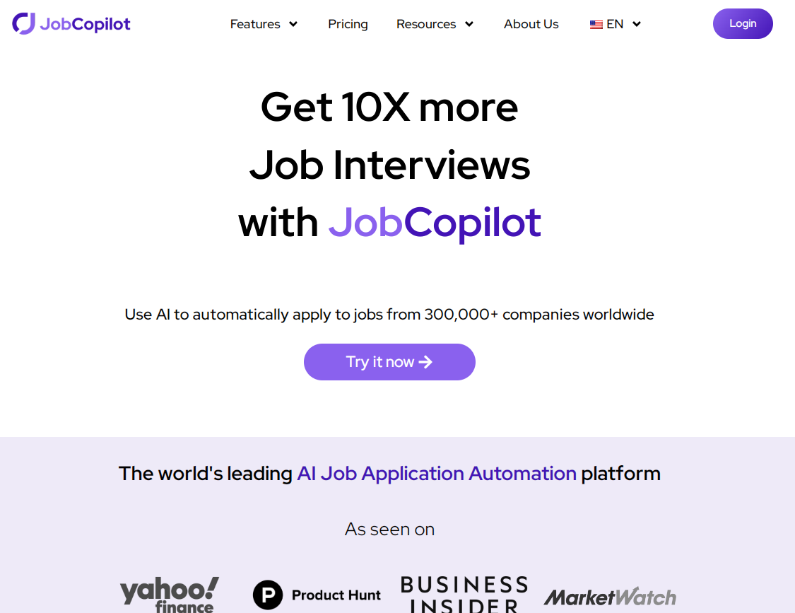 An AI assistant that automates your job search by applying up to 50 times a day to 50,000 job boards. It generates personalized cover letters, optimizes your applications and trains you for job interviews